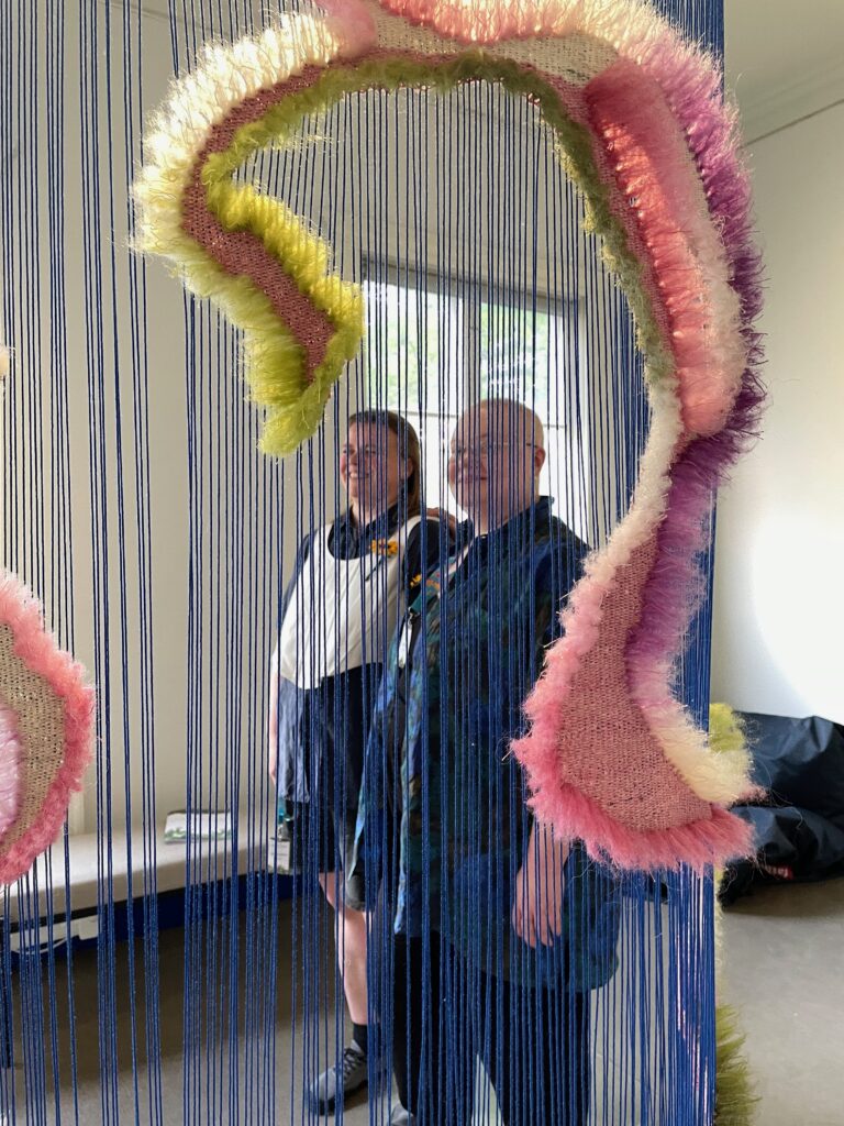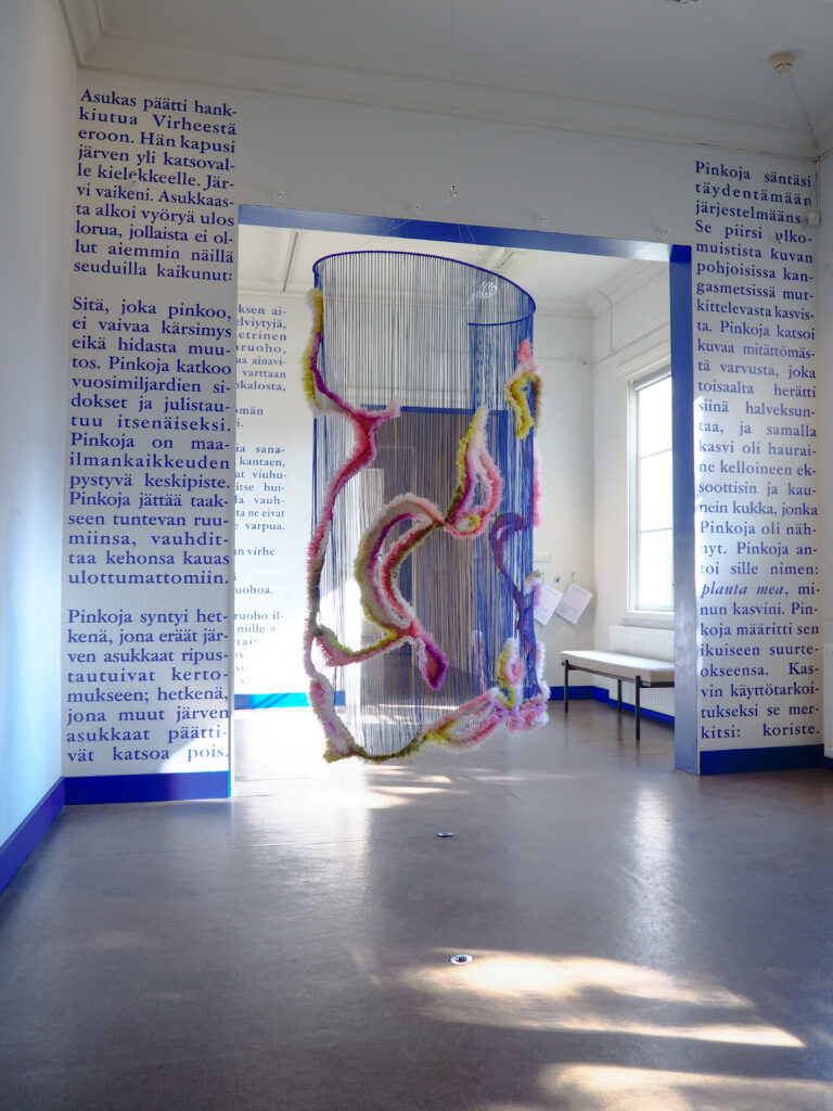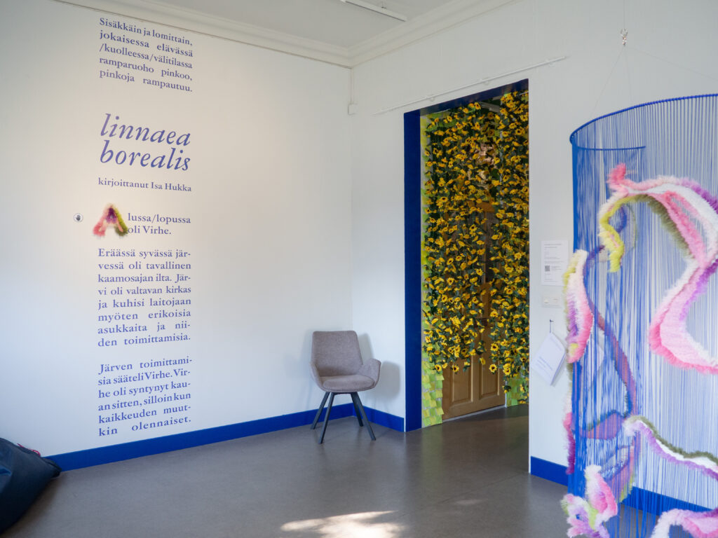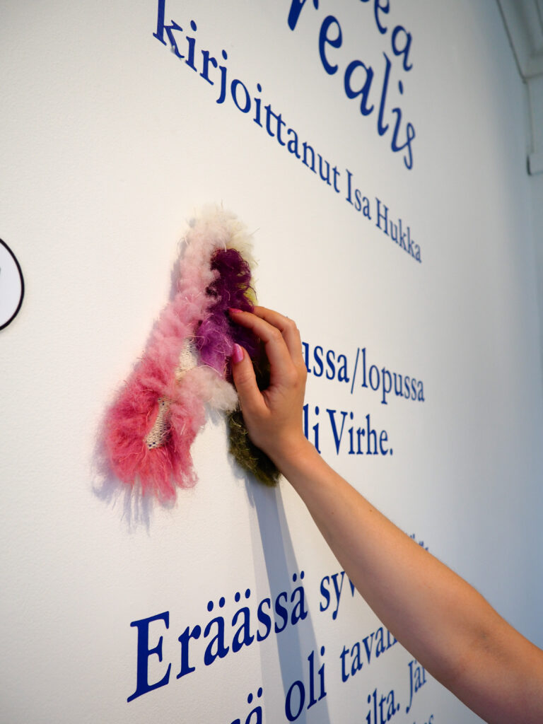 - Yhdessä rakensimme yhteisen näyttelyhuoneen, jossa teksti- ja tekstiilitaide keskustelivat ja kertoivat ramparuohoa.