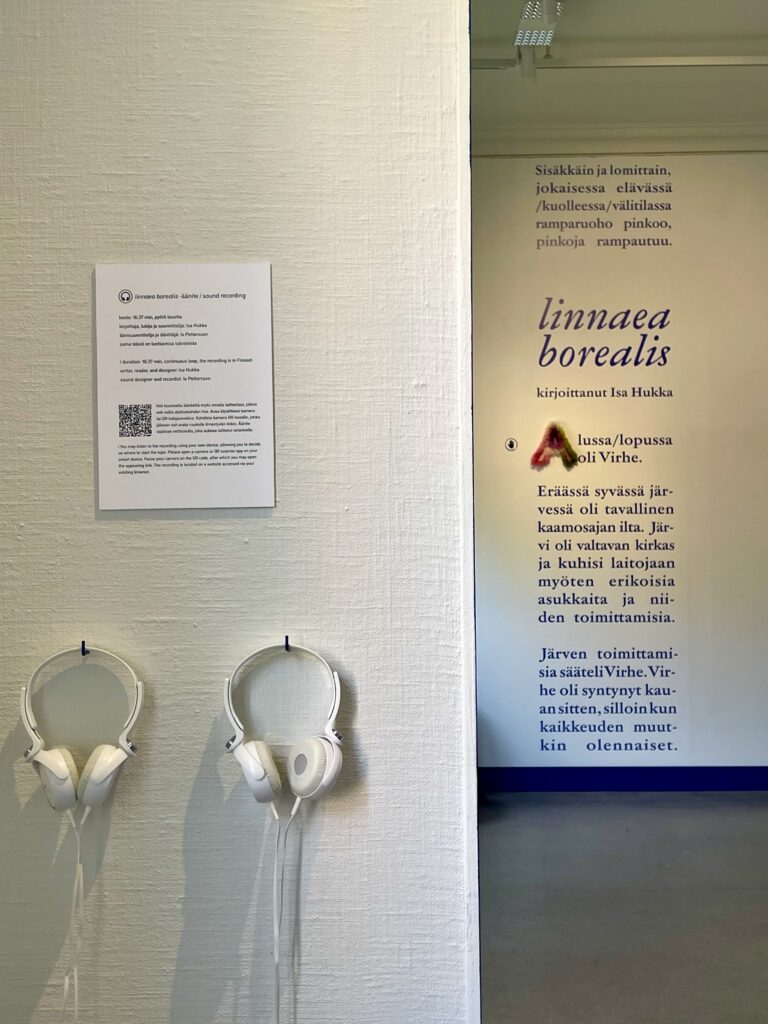 - Äänitteenä (16 min 37 s), joka oli kuunneltavissa museon kuulokkeilla tai QR-koodin kautta.