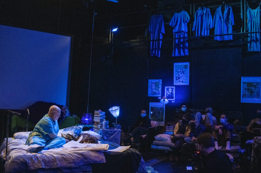 Play: ‘yökylä/sleepover’, written and performed by Isa Hukka. Premiere at Viirus teater in November 2022, as a part of a collective 2-day crip performance event ‘inviting precarious perspectives’. Coming Stage -initiative by Baltic Circle International Theatre Festival, funded by Kone Foundation.