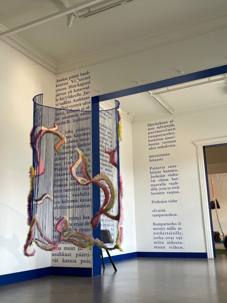 A piece combining text and visual arts: ‘linnaea borealis’, a part of our co-created work ‘ramparuoho’ with visual artist Hele Okkonen. Rauma Triennale international contemporary arts exhibition from June to September 2026.